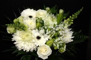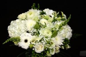 Este elegante ramo está compuesto por flores blancas y verdes de temporada que le dan un aspecto suave y apacible. Adecuado para todas las ocasiones.