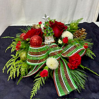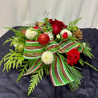 This whimsical Christmas arrangement features a charming Santa OR Snowman centerpiece, bringing festive cheer and holiday magic to your décor. With their joyful expressions, they add warmth and spirit, creating the perfect touch of Christmas fun for your home.